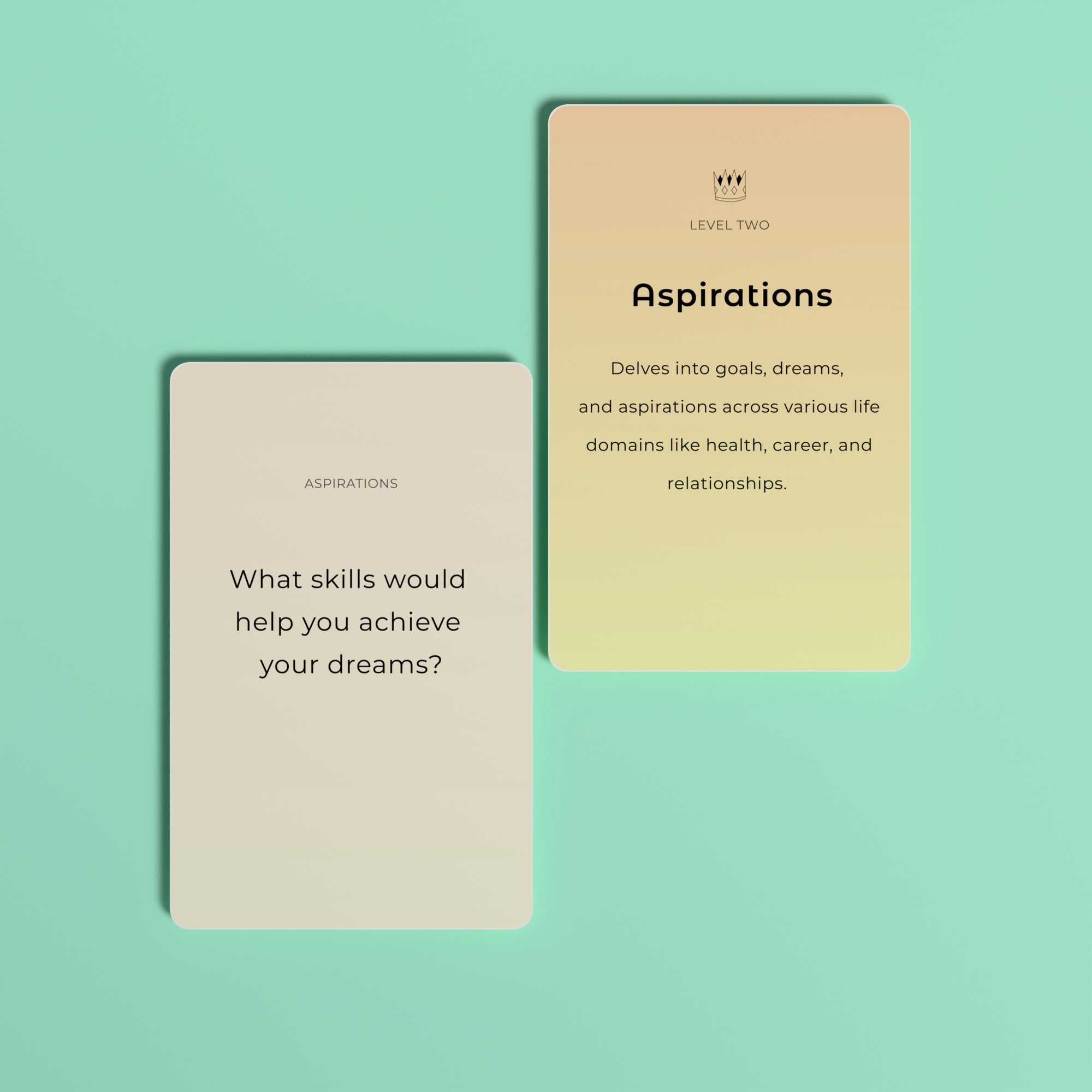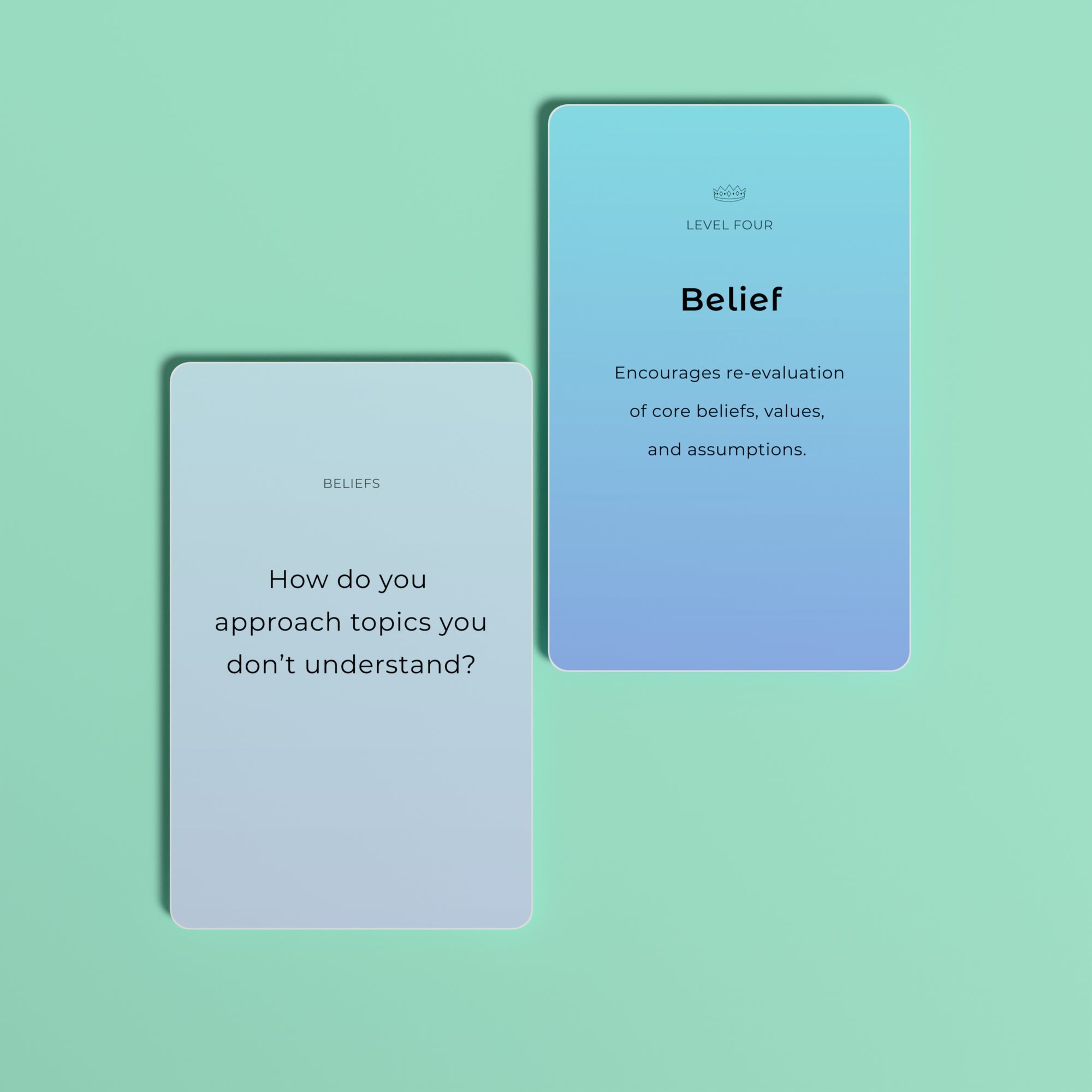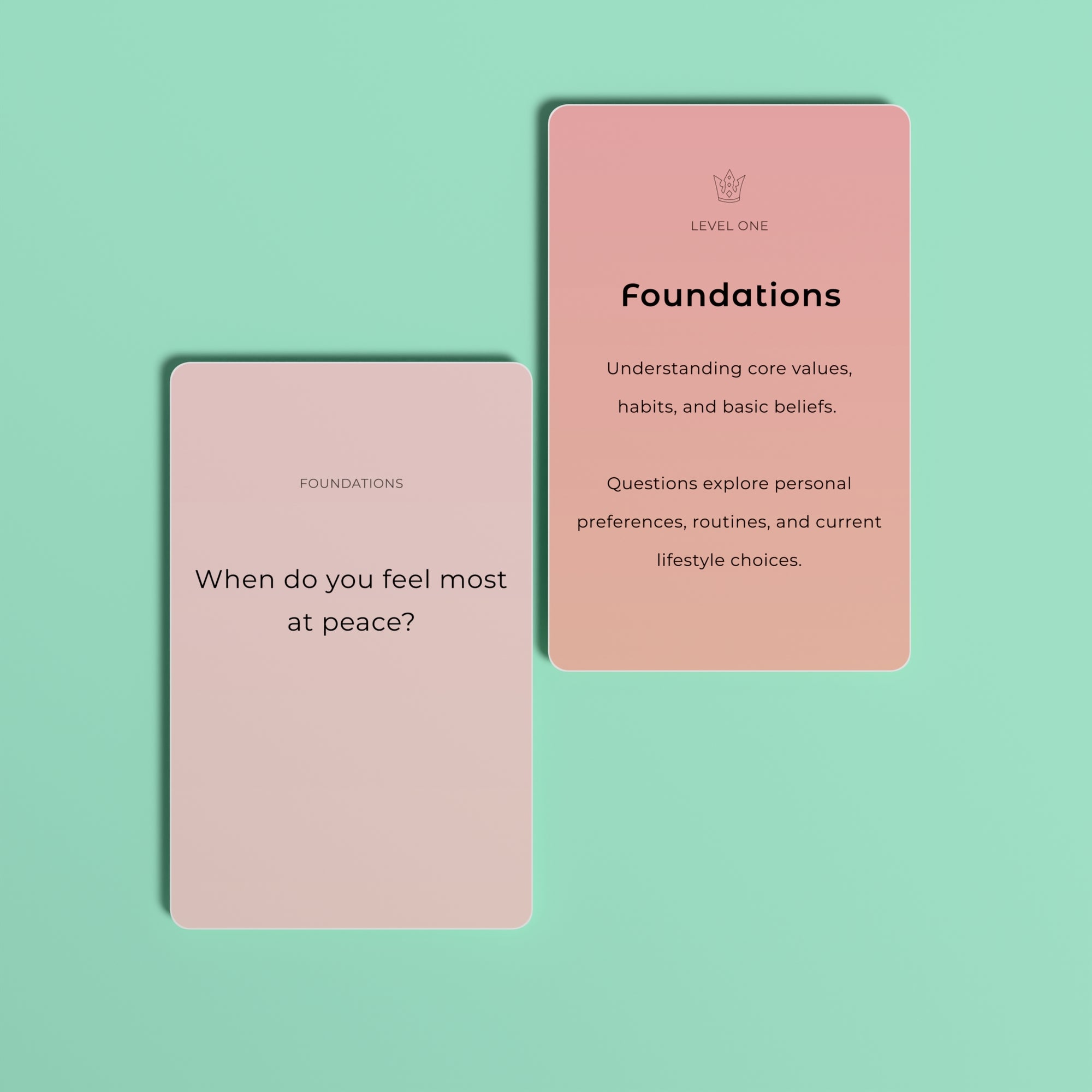 Pick a level. Draw a card. Answer honestly. That's it. Each session takes as little as five minutes — but the insights you gain can stay with you for a lifetime. Start light, go as deep as you're ready for.